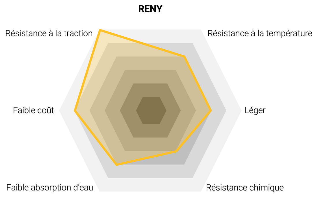 Matériau RENYRENY est un matériau à base de polyamide hautes performances renforcé à 50 % de fibres de verre, offrant une résistance mécanique et une rigidité exceptionnelles. Son excellente stabilité dimensionnelle et sa résistance à l'usure en font un matériau idéal pour les applications exigeantes dans des secteurs tels que l'automobile, l'électronique et les machines industrielles. RENY offre également une résistance thermique supérieure et une durabilité à long terme, tout en maintenant les performances dans des conditions de forte contrainte. Ces qualités en font un matériau de confiance pour les applications nécessitant précision et fiabilité.