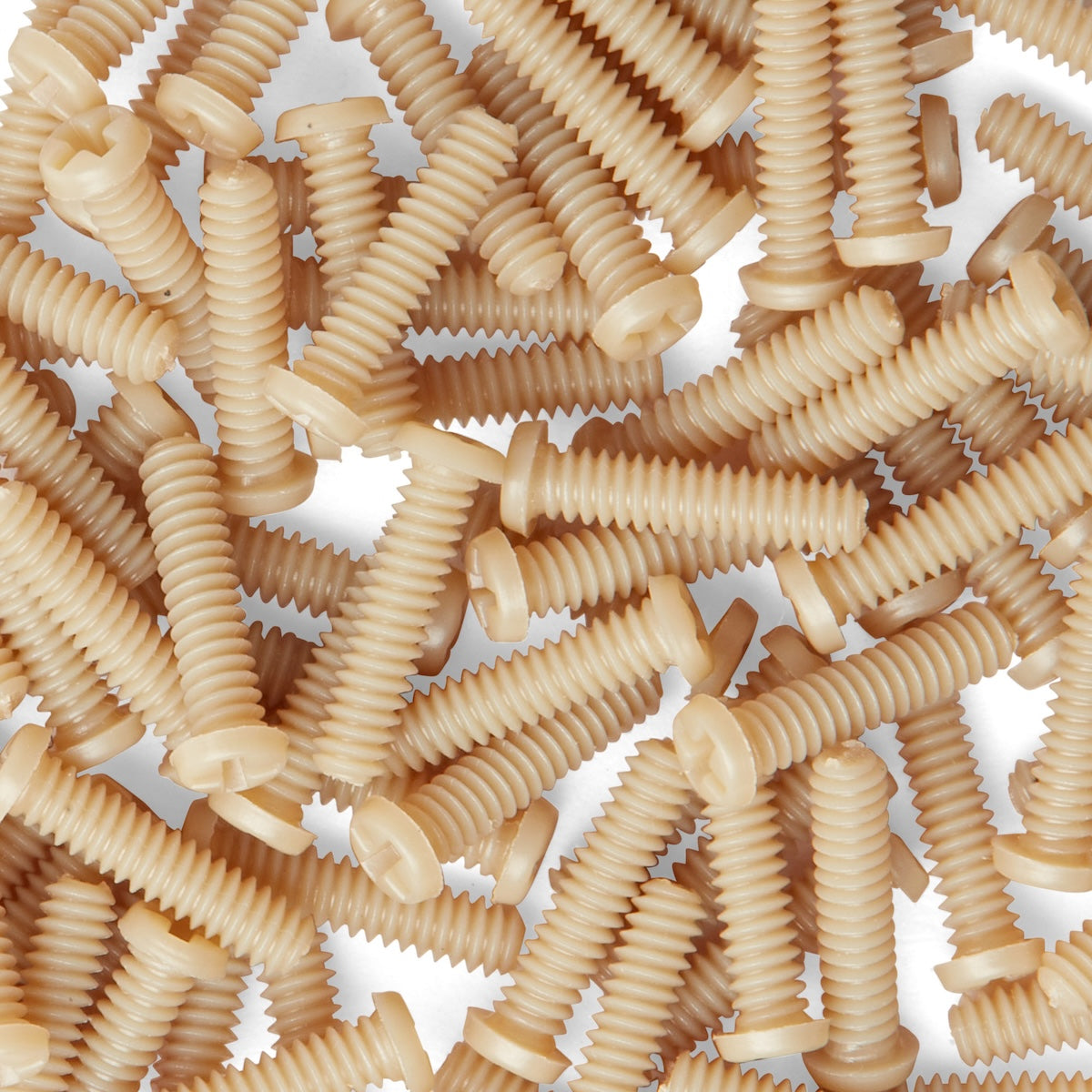 Les vis à tête cylindrique à empreinte cruciforme PEEK GF30, disponibles dans des tailles allant de M1,2 à M1,6 et des longueurs allant de 1,5 mm à 6 mm, sont des fixations de précision fabriquées en PEEK GF30, un thermoplastique haute performance renforcé de 30 % de fibres de verre. Ce matériau offre une résistance mécanique, une résistance chimique et une stabilité thermique exceptionnelles, ce qui rend ces micro-vis idéales pour les applications nécessitant une précision et une durabilité élevées. La conception de la tête cylindrique à empreinte cruciforme facilite une fixation facile et sûre, tandis que le renfort en fibres de verre améliore la rigidité et la résistance à l'usure du matériau. Les propriétés légères et électriquement isolantes du PEEK GF30 contribuent également à son adéquation à un large éventail d'environnements exigeants.