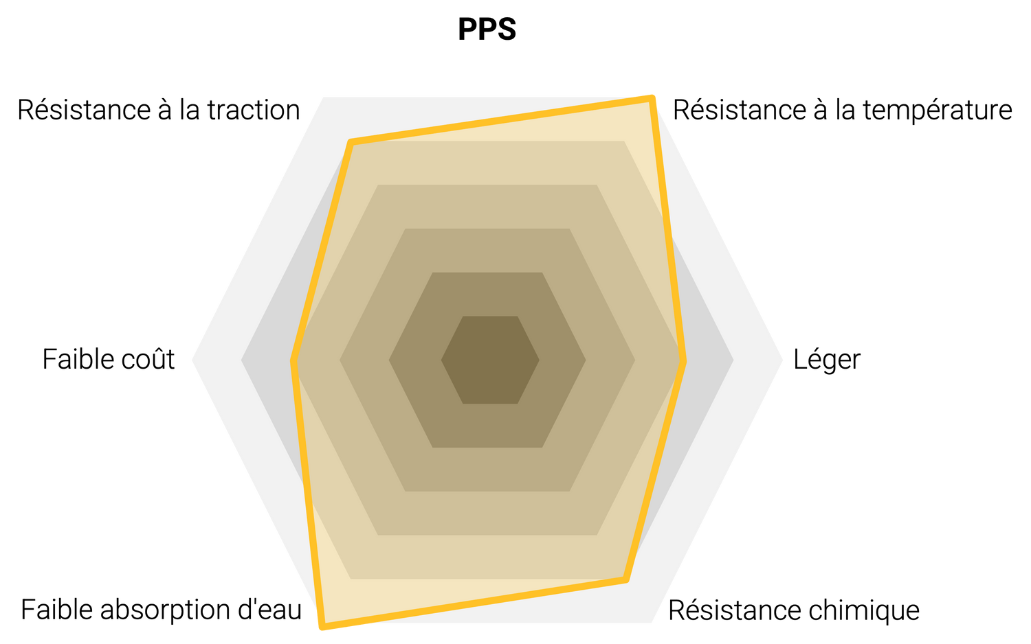Le PPS possède des caractéristiques qui se positionnent parfaitement entre notre gamme RENY et PEEK.