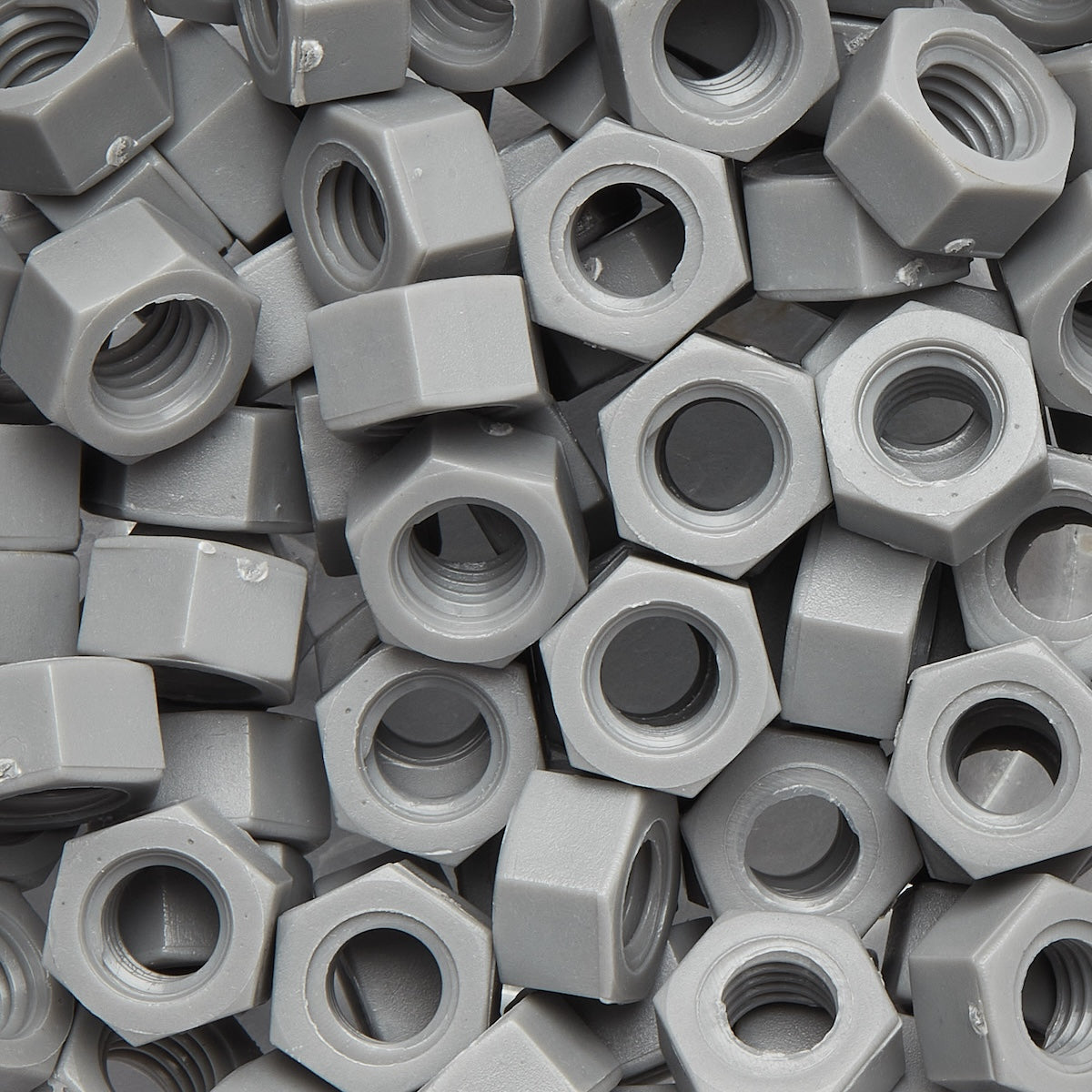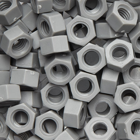 Nos écrous hexagonaux en PVC sont conformes à la spécification DIN 934. Nous vous conseillons d'associer nos écrous hexagonaux à des rondelles plates en PEEK pour éviter tout dommage à la fixation ou au composant lors du serrage.
